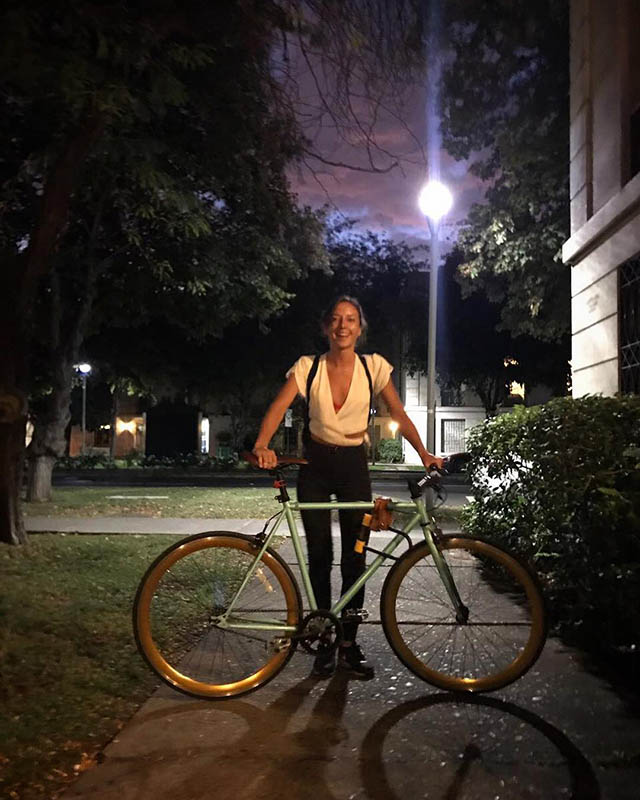 Me encantaría recordar quién me enseñó a pedalear. La verdad es que no tengo idea, asumo que fue mi papá, mis hermanas grandes, toda la familia o quizás fue algo un poco espontáneo que se dio, no sé si de manera innata, pero estaba ahí, de verdad que no recuerdo quien fue, solo recuerdo que desde muy chica andaba en la bicicleta, desde muy chica no tuve las rueditas de ayuda y desde muy chica la bicicleta fue como mi compañía para todos los lugares a los cuales me movía. Si bien eran cerca de mi casa siempre pero siempre en bicicleta, siempre, siempre en bicicleta.