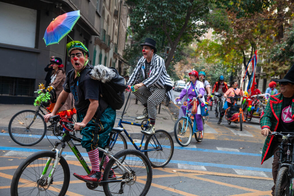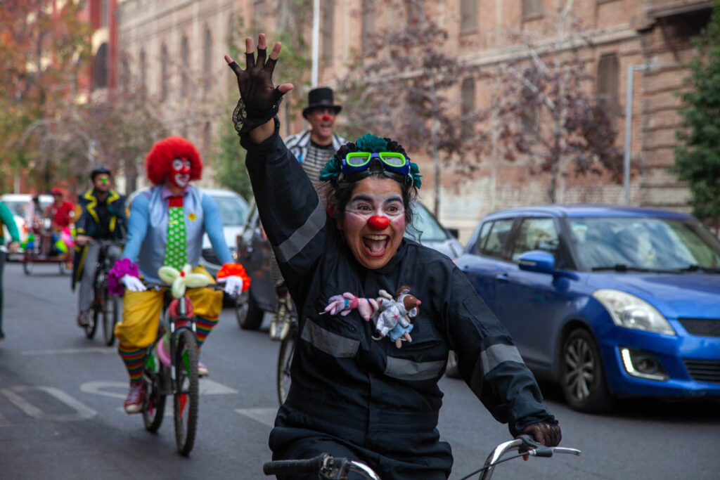La jornada comenzó en Casa Payaso, en Avenida Matta 353, donde los participantes de coloridos trajes, se reunieron para dar inicio a este festín de diversión sobre ruedas. Desde allí, los ciclistas y artistas se lanzaron a recorrer distintos puntos emblemáticos de Santiago, llevando el arte y el humor a cada esquina.