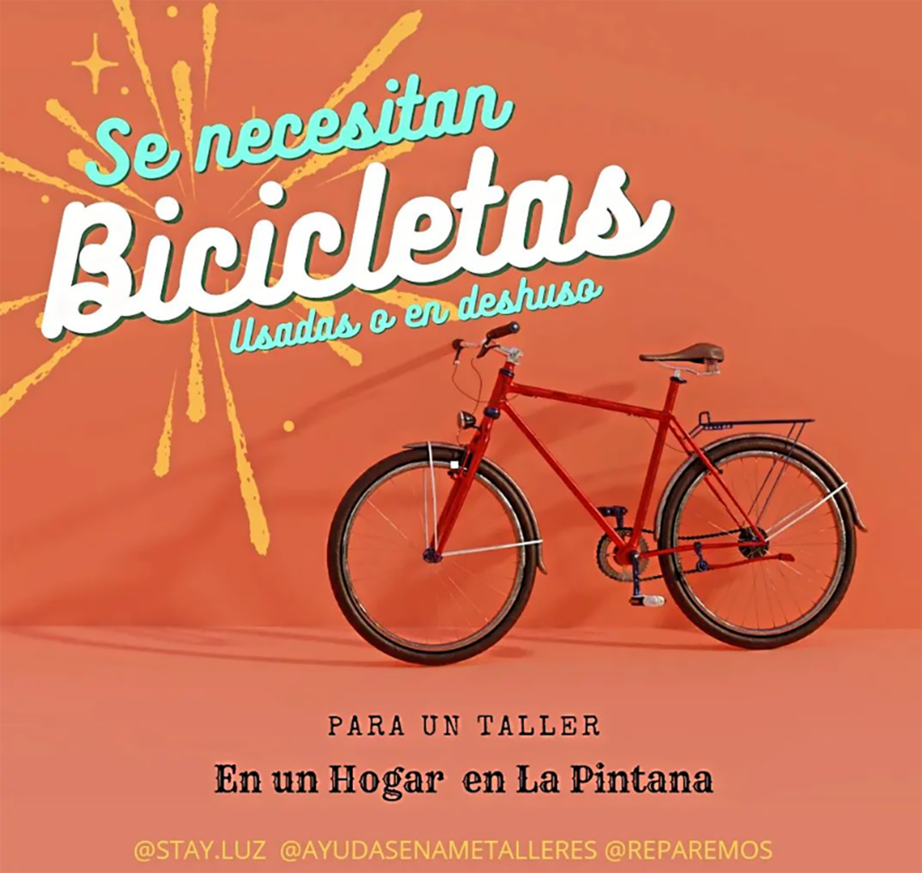 “Mi idea era recolectar bicicletas que la gente tiene votadas en sus casas y repararlas para luego donarlas a un hogar de menores. Uno de los objetivos de esta campaña es enseñarles a los niños a reparar bicicletas, para aportar a su recreación y darles independencia, para que cuando ellos salgan del hogar sepan reparar bicicletas para ellos mismos, pero en caso de necesidad cobrar por aquello. Mi objetivo es que puedan aprender como entre comillas un oficio con el que puedan sacar plata de ello y por otro lado movilizarse en bicicleta en caso de que no tuvieran plata para movilizarse”.