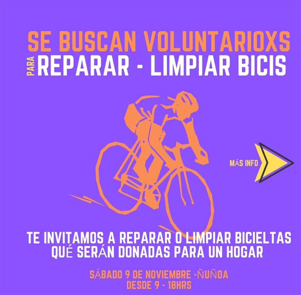 Este sábado 9 de noviembre se realizará una jornada de reparación de bicicletas, las que serán entregadas a un hogar de menores en La Pintana.