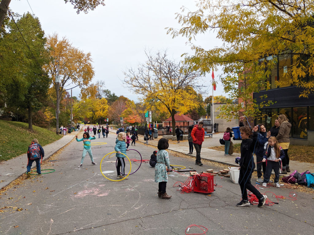 Los ejemplos de Francia, Viena, Londres y Toronto muestran que los padres apoyan mucho las intervenciones. Sus testimonios reflejan que a las familias y al personal escolar les gusta el sentido adicional de comunidad escolar que aporta esta estrategia, especialmente en un momento en que la pandemia de COVID19 ha restringido la convivencia de la comunidad. En Toronto, por ejemplo, el 100% de los niños encuestados durante la iniciativa piloto de la Calle Escolar de Mountview Avenue dijeron que preferían que la calle de su escuela estuviera libre de coches. Otro ejemplo en París, muestra que una gran mayoría de las 150 “Rues aux Ecoles” implantadas, se han convertido en permanentes, después de que una encuesta realizada por UNICEF revelara que el 87% de los padres están a favor de la iniciativa. Esta fuerte aceptación y apoyo de la comunidad a este programa ayuda a abogar por la ampliación de las Calles Escolares y convertirlas finalmente en estrategias permanentes de nuestras ciudades. Por último, las Calles Escolares también aumentan el bienestar al reunir a las familias y a la comunidad en general en un espacio urbano recuperado, lo que permite socializar más fácilmente y que los niños jueguen a la hora de recoger y dejar a los niños.