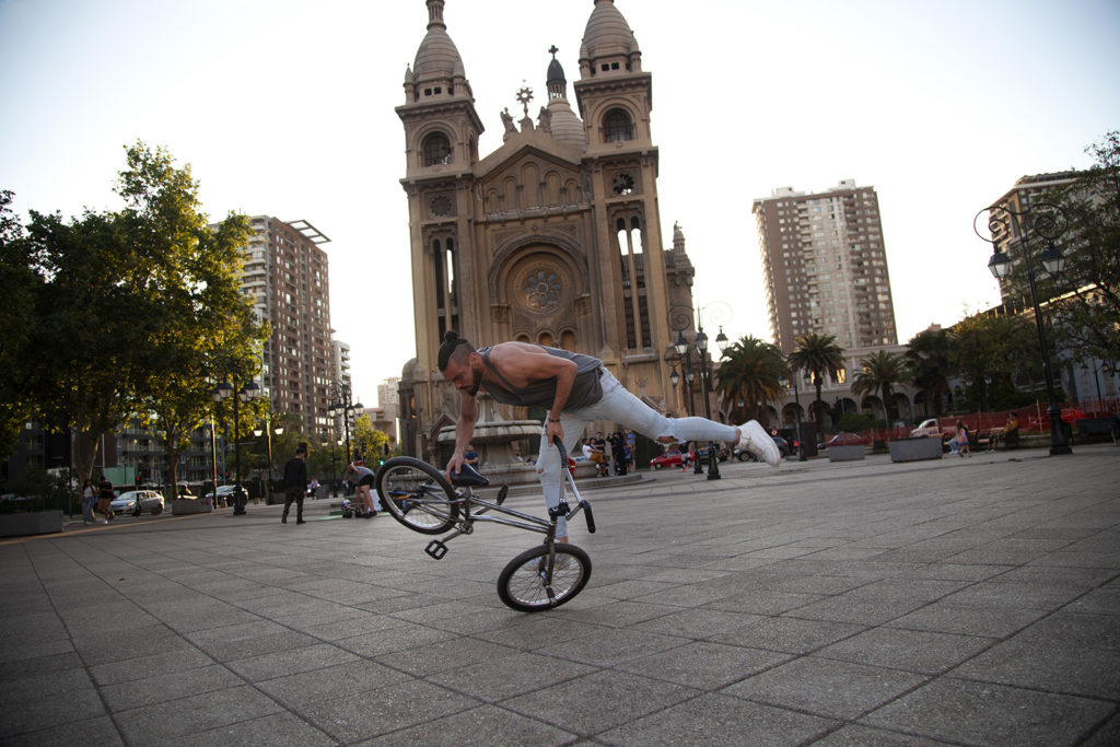 Los que han visto el video de “A la cima”, la canción oficial de Santiago 2023, habrán notado a un ciclista haciendo trucos de BMX sobre los techos de edificios de la ciudad. El hombre en cuestión es “Ciclester”, campeón en BMX flat land que su vida lo ha llevado al mundo de las artes.
