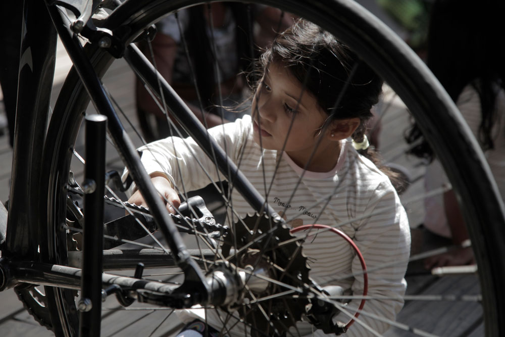 El punto de encuentro de hoy fue el frontis del Museo de Bellas Artes y desde ahí las niñas junto a sus cuidadoras y cuidadores pedalearon hasta el laboratorio ciudadano Independencia Ciudadana, donde se realizaron actividades como el taller de primeros auxilios con Brigada Dignidad, mecánica de bicicletas con Huaytakilla y música junto a Kiltrak Sonica y Colectivo Gata Engrifá.