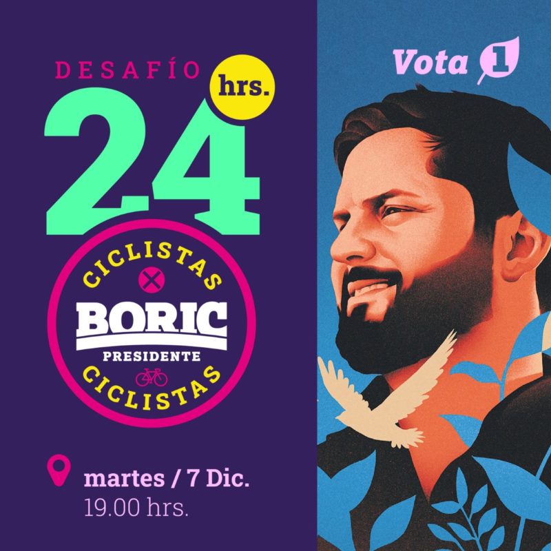 Luego de los resultados de las Elecciones Generales de noviembre y a días de la segunda vuelta, se han formado varios comandos ciudadanos para hacer campaña por Gabriel Boric. Lo que ha sido replicado por un grupo de ciclistas que convocó a organizarse y pedalear por el candidato.
