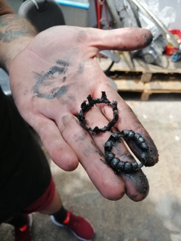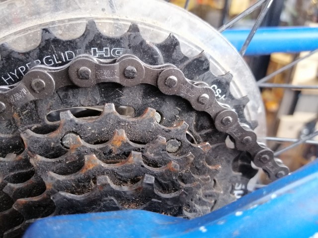 Tanto el piñón como las coronas del volante son una serie de discos metálicos dentados, diseñados para calzar perfectamente con la cadena de transmisión y llevar el esfuerzo de manera más eficiente desde tus pies a la rueda trasera. A través de las distintas relaciones de cambio o desarrollos (de ahí que algunas bicicletas cuentan con 1, 2 o 3 platos en su volante y hasta 12 discos en su piñón). Estos componentes por abuso y uso de cadenas alargadas (que ya alcanzaron el punto de no retorno) comienzan a acumular un deformación tal que se asemejan cada vez más a olas de mar, impidiendo un calce adecuado con cadenas de menor desgaste, aumentando el riesgo de salto de cambios, perdiendo dientes y siendo un riesgo por su forma afilada. Existen en el mercado herramientas diseñadas para medir su desgaste, pero los indicadores más obvios son las rebarbas que se forman en el borde de cada uno de los dientes.