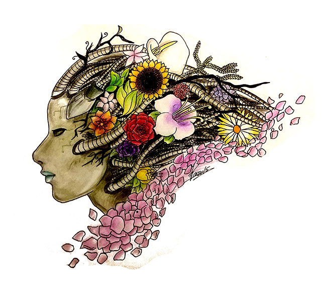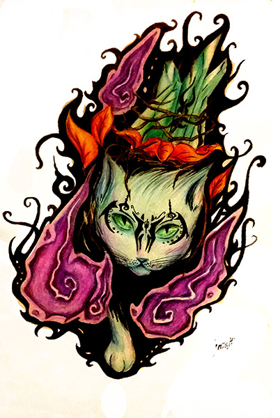 Trabajo mucho con la experimentación por lo que puedo realizar variados estilos o técnicas en mis ilustraciones. En mi trabajo se destacan los detalles y la fantasía, que también he llevado a diseños de tatuajes.