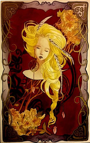 Mis intereses y proyectos son realizar videos y animaciones, poder conocer nuevas ilustraciones de otros artistas e influenciarme con ellos. Uno de referentes es Jennifer Haely, una de mis ilustraciones es en honor a ella con estilo art noveau. Junto a esto, también realizo retratos realistas, ilustraciones infantiles y fastasia.