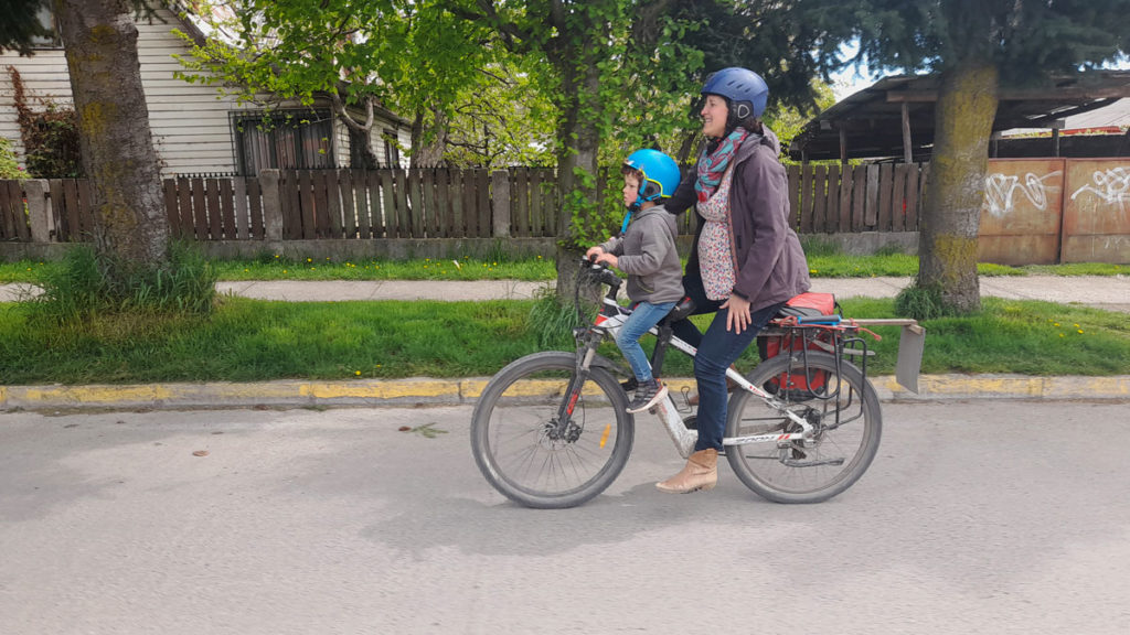Por otra parte, nos sentimos con la obligación de sensibilizar a nuestro hijo sobre la contaminación que genera el uso indiscriminado del auto (a todo esto, si tenemos uno pero lo usamos cuando realmente lo necesitamos), la desproporción del uso del espacio público que compartimos todos/as, y de lo lindo que es escuchar las aves en nuestros trayectos cotidianos. Y aunque muchos/as no lo crean, efectivamente la vida se hace más fácil moviéndose en bici (imperativo eso sí equiparla con un par de alforjas). Coyhaique, al final de cuentas, ha sido la ciudad más amigable para hacerlo (imagínense como será cuando tenga ciclovías) y por lejos, la que tiene las mejores oportunidades y vistas.