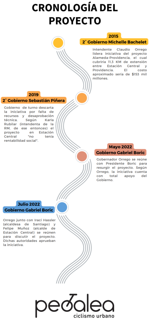 Tras siete años desde el anuncio del proyecto Alameda-Providencia, la iniciativa vuelve a estar en boca del Gobierno. Te recordamos los altos y bajos por los que pasó esta idea y qué se ha conversado hasta el momento con respecto a su realización.