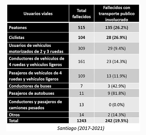Bueno, yo creo que la primera cosa importante es que el impacto del transporte público sobre los peatones y ciclistas es muy grande. Porque en Santiago, más del 26% de los peatones y ciclistas fallecidos, lo hacen con un bus involucrado. Y cuando lo comparo con otras ciudades, como Concepción o Valparaíso, es aún más.
