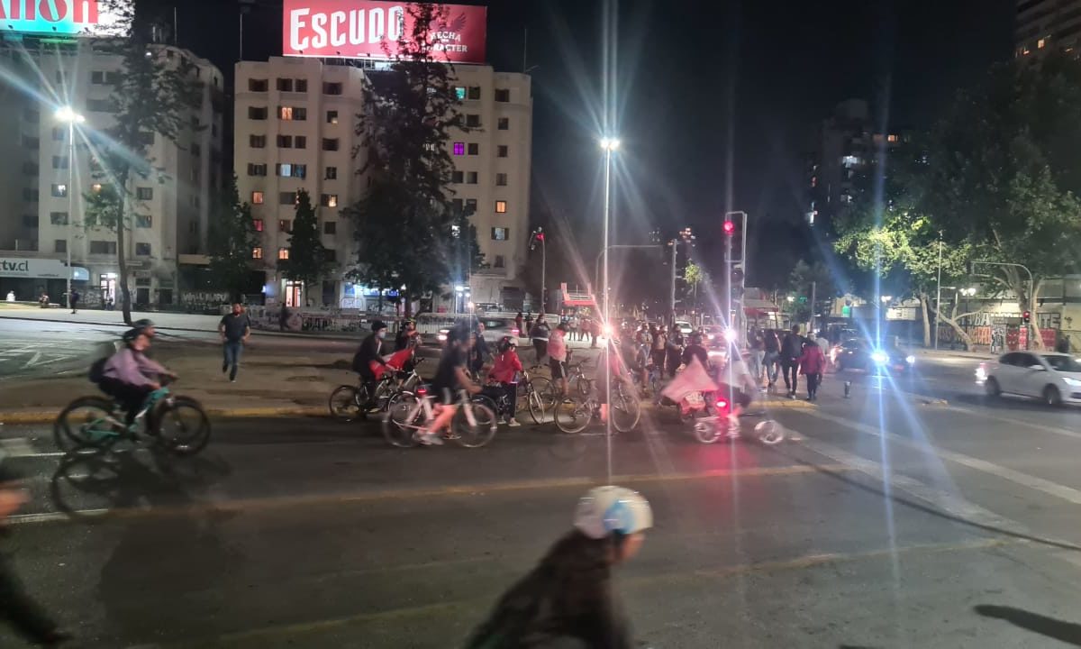 En este contexto, el colectivo Ciclistas x Boric, inspirados en las “1.800 horas corriendo por la educación” del 2011, convocó a la actividad “24 horas en bici x Boric”. Así montaron en Plaza Dignidad, un punto de encuentro con banderas del candidato, y a eso de las 20:00 horas comenzaron a pedalear.