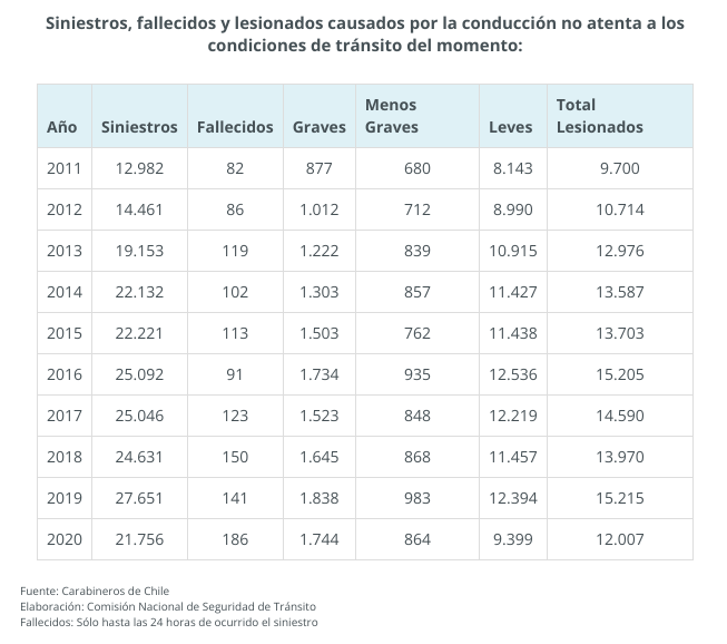 Hemos normalizado una conducta muy riesgosa y eso nos ha ocasionado un aumento de siniestrabilidad vial, pero sobre todo un número que a mí me impactó y que la cantidad de lesionados que deja esta causa, más de 25.000 siniestros al año y más de 12.000 lesionados. Es un tema súper grave. El uso del celular ha sido una causa que ha aumentado estas cifras en los últimos 5 a 8 años, entonces se hacía necesario tener una ley que evidenciara que no solamente la velocidad o conducir bajo efectos del alcohol está matando personas, genera fallecidos, lesionados y víctimas, sino que también la distracción por dispositivos móviles”, afirma la especialista.