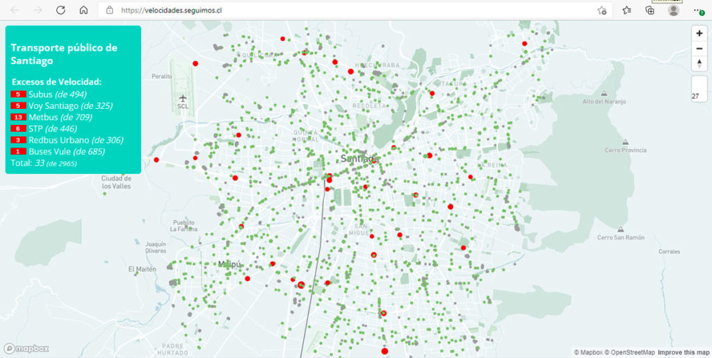 “Se trata de información que las autoridades no pueden desconocer, porque no es un mapa estadístico sino lo ocurre en este momento y que se actualiza cada 30 segundos, es decir, es la realidad en tiempo real. Lo que buscábamos era poner sobre la mesa una realidad que el MTT ha negado y el peligro que representan los buses de transporte público que circulan a exceso de velocidad. Hemos detectado buses a 90k/h en calles locales, no en autopistas, sino en calles como Departamental, Vicuña Mackenna o Pajaritos y eso es inaceptable, porque terminan matando a personas”, explica Ariel López, quien también preside la ONG Map8.
