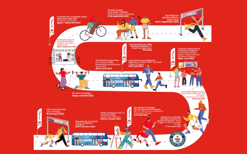 Como mencionamos al principio, una de las actividades principales es batir un Récord Guinness. Como cuenta Nicole, “una de las características del programa Gana Santiago, es poner siempre la participación ciudadana al centro de la estrategia y consideramos que una actividad como la de intentar batir un Récord Guinness tiene doble mérito; involucrar a las personas y además relacionarlas directamente con el programa deportivo de Santiago 2023”.