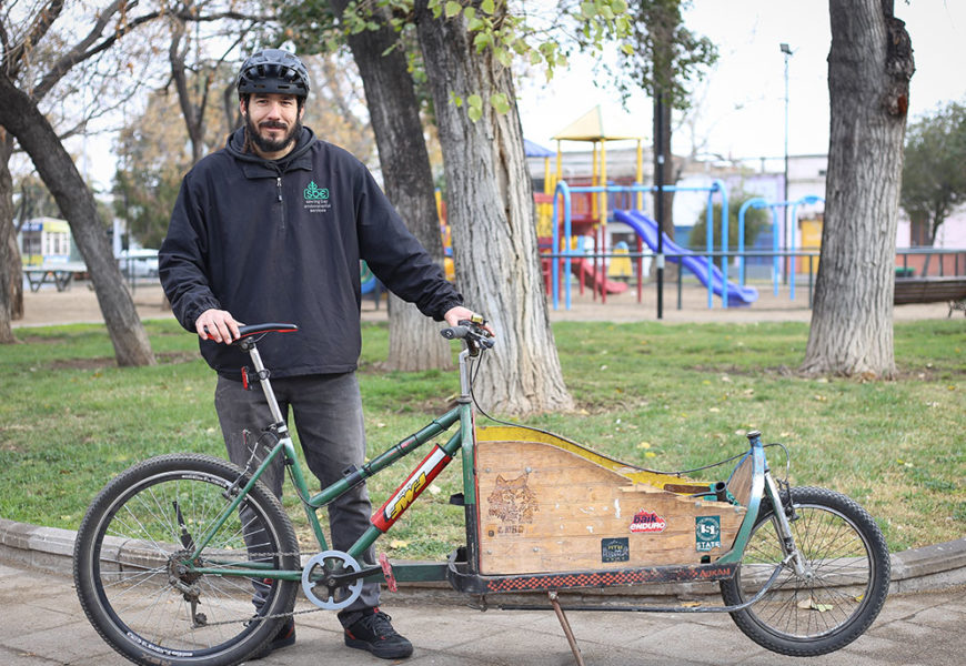 Mi bici cargo la hice hace 4 años con la ayuda de planos que conseguí en internet. Me ha traído muchos beneficios, incontables, sobre todo para mis hijos Aukan y Mailen de 3 y 7 años. Ellos son los más felices porque podemos salir a recorrer la ciudad, conversamos, escuchamos canciones, interactúan con las personas, con la calle. Entonces yo la recomiendo, ya sea una cargo o cualquier otro método con el cual incluir a los niños, para mí es súper importante, sobre todo, porque los hace partícipes del movimiento, generamos escuela desde chicos para que cuando sean grandes puedan ser independientes en su propia bici y ya sepan cómo movilizarse por la ciudad.