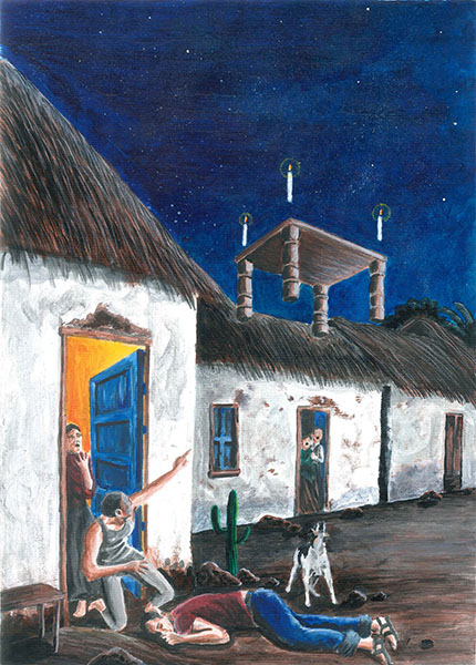 Para elaborar estas ilustraciones quise rescatar historias pertenecientes a cada región de Chile, representando en ellas la flora, fauna, vestimentas, arquitectura, paisajes, y geografía del lugar. Así aportar realismo y credibilidad a los relatos. Transportando al lector a este mundo fantástico.
