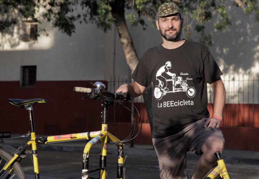 Gonzalo Díaz de la Carrera es ciclista y fundador de La Beecicleta, emprendimiento que se moviliza por Santiago en una cargo bike repartiendo y ofreciendo miel en distintos formatos. La iniciativa fue de su padre, y desde hace 5 años que ambos se aventuraron sin saber mucho, pero con la motivación de aprender y capacitarse sobre la apicultura.