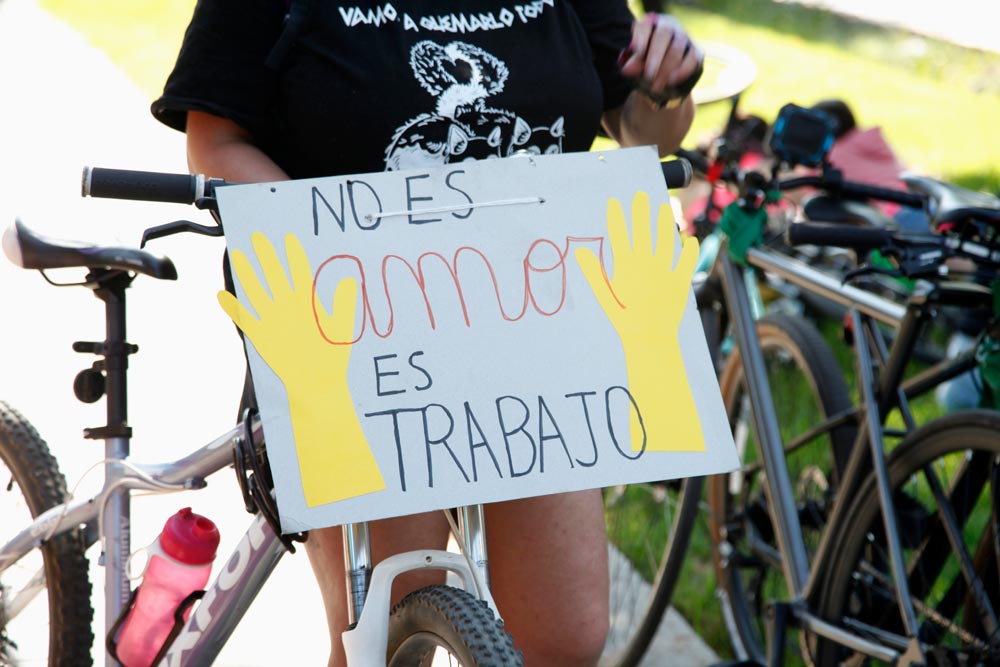 La bicicleta ha sido una de las estrategias que han hecho posible abrir y cuestionar la falsa dicotomía entre el espacio público y el privado, siendo una forma de atravesar la barrera impuesta por la división sexual del trabajo que se transformó en una división sexual del espacio. Esto último significa que la construcción de espacios urbanos no ha tenido en cuenta la diversidad de personas que los habitan ni mucho menos ha sido pensada para los asuntos más básicos de la vida cotidiana: los cuidados y la mantención de la vida. Esto repercute directamente en la calidad de vida de quienes, históricamente, nos hemos ocupado de estos asuntos: las mujeres y, más aún, las mujeres pobres, precarizadas y racializadas.