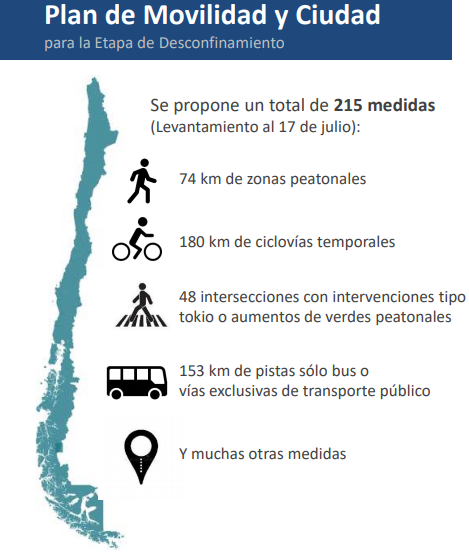 Enmarcado en el Plan Paso a Paso del Ministerio de Salud, la propuesta del MTT consta de 222 medidas que la autoridad identificó como acciones concretas para favorecer un mejor desplazamiento, tanto de peatones como de usuarios de los distintos modos de transporte.