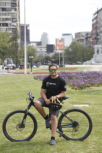 Por esos días, otro hecho gatilló su pasión por las dos ruedas. La bicicleta amor a primera vista: desde que la vi siempre soñaba con recorrer el mundo, con pescar mi mochila con cámaras y equipos para viajar. Pero creo que el momento que marcó un cambio fue cuando vi a un amigo en la universidad que se hizo una mountain bike hechiza, con neumáticos anchos. Imagínate, era mediado de los 80. Yo me obsesioné con eso. Quería una bici más pro. Era bueno para subir cerros. Yo destacaba en los deportes extremos y de aventuras”, explica.
