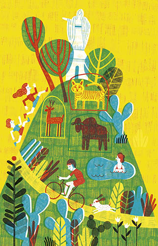 Paloma Valdivia dice que siempre gozó dibujando, que, desde chica, era lo que más le gustaba hacer. Años más tarde, motivada por esa pasión, decidió estudiar diseño en la Universidad Católica, pensando, erróneamente, que en esa carrera “iba a dibujar más de lo que la hicieron dibujar”. En esa época, a diferencia de lo que ocurre hoy, no habían estudios formales de ilustración. “La ilustración como tal no existía o había dejado de existir. Antes hubo un montón de grupos de ilustradores, que eran mayores, y que desapareció. No sé si fue por la dictadura, donde se hicieron muy pocos libros ilustrados en Chile”, comenta Paloma. Durante el segundo año de universidad, descubrió a través de un ramo que tomó en la Escuela de Arte, que la ilustración estaba más viva que nunca. “Empecé a buscar otros ilustradores y me encontré con un grupo, que hasta el día de hoy son mis amigos”. Juntos, crearon el colectivo Siete Rayas, uno de los más conocidos y respetados en nuestro país y cuya primera exposición se tituló El Beso. “El primer dibujo que hice para esa exposición fue una bicicleta. Era un beso, una pareja besándose en una bicicleta. Se me ocurrió porque yo andaba mucho en bicicleta. ¿Y sabes? Dibujar bicicleta es una de las cosas más difíciles que hay. O sea, súper bien el manubrio o las ruedas, pero llegar a la parte de cómo se conectan los pedales con la cadena y todo eso, es un lío que todavía no logro resolver. Tengo una técnica, un artilugio de dibujo en esa parte, pero es muy difícil”.