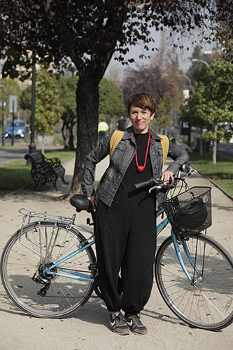 Desde que me cambié de casa, en octubre, la uso todos los días para ir a la oficina. Tengo la ciclovía de Pocuro con Antonio Varas, y llego a la oficina, que está en Metro Manuel Montt. Es demasiado práctico. Me demoro 18 minutos en llegar y es una felicidad completa. A mi me vuelve loca el auto, me carga, lo odio. Antes subía el cerro caminando y ahora me doy cuenta que ese ejercicio me ordena emocionalmente. A ordenarme si estoy con tal problema, si está bien mi vida, si está mal. Pero cuando ando en bicicleta es creativo. Voy pensando en los proyectos, resuelvo ciertos dibujos. No sé con qué tiene que ver, pero para mí, el pedalear y entrar en ese ritmo de pedaleo constante, tiene que ver con resolver ciertas cosas creativas que de otra manera no logro solucionar.