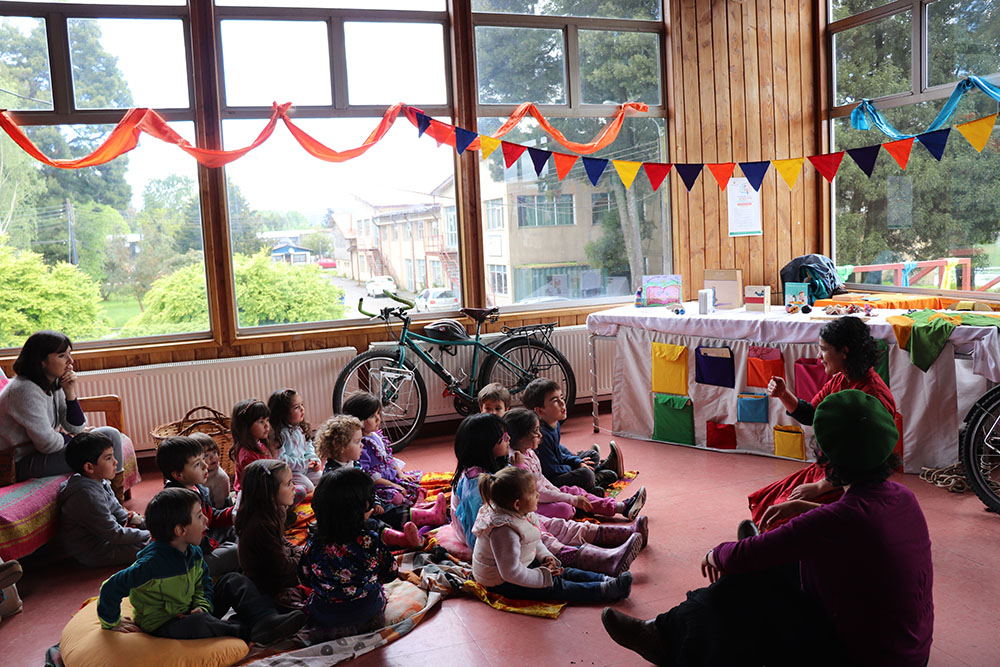 Fue en este mismo ambiente, sureño y educativo, que ambas se conocieron. “Yo había trabajado antes en cuenta cuentos y Maritza en educación ambiental, y poco a poco fuimos uniendo los puntos y se formó este proyecto en el que queremos hacer un espacio lúdico en el cual pudiésemos cantar, jugar, contar cuentos y hacer en el fondo un espacio de fomento lector”, cuenta Javiera quien también es psicóloga y estudió pedagogía Waldorf.