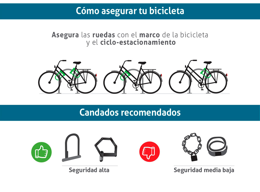 - Invertir en un buen candado, aparcar la bici al alcance de la vista.
