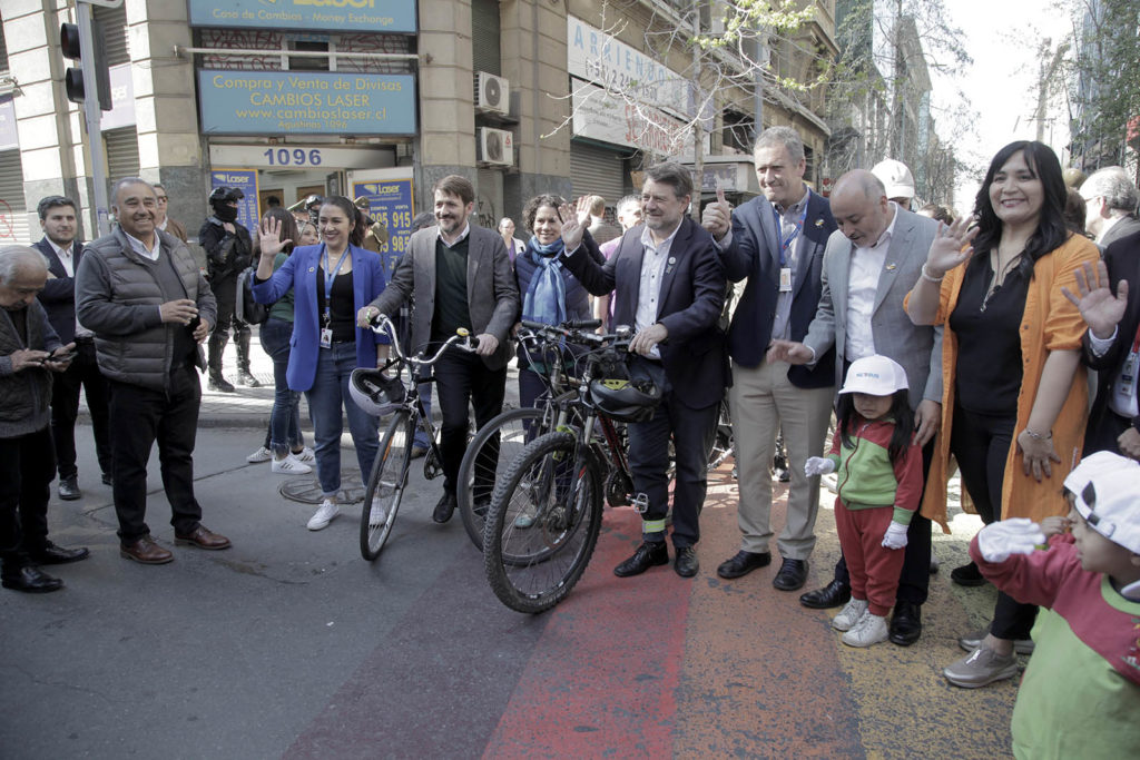 Diversas autoridades participaron del Paseo de la Movilidad en el centro de Santiago.