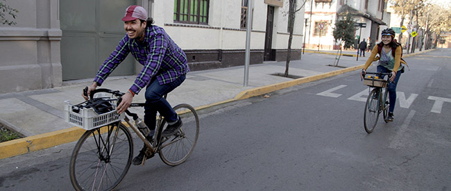 Jimena Santibáñez y Cristian Muñoz preparan comida vegetariana en su casa ubicada en el cerro San Cristóbal y la reparten personalmente en bicicleta a sus clientes.