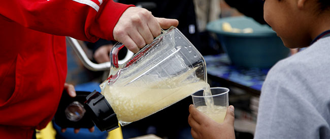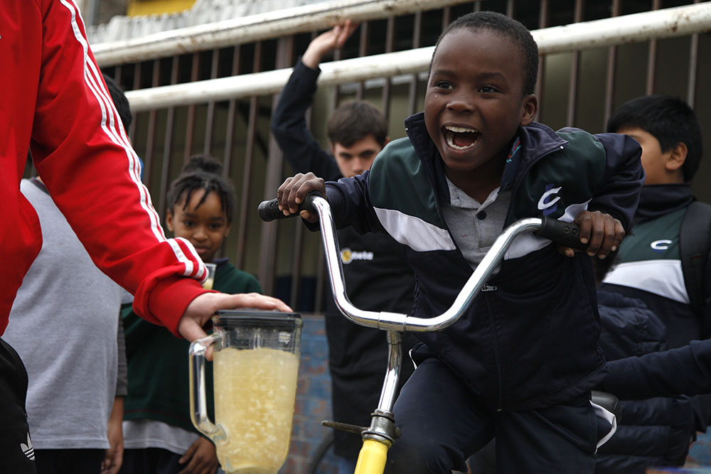 La idea comienza cuando en los recreos del establecimiento Hernán se da cuenta de que la fruta que reciben los niños y niñas a través de JUNAEB se desperdiciaba. “Noté que la partían, se la tiraban por la cabeza, al final la ocupaban para cualquier cosa menos para comerla. Pensé que era el momento de incentivar al consumo saludable y entretenido de la fruta, a través de una bici licuadora que funciona con la energía que proporciona el pedaleo”.
