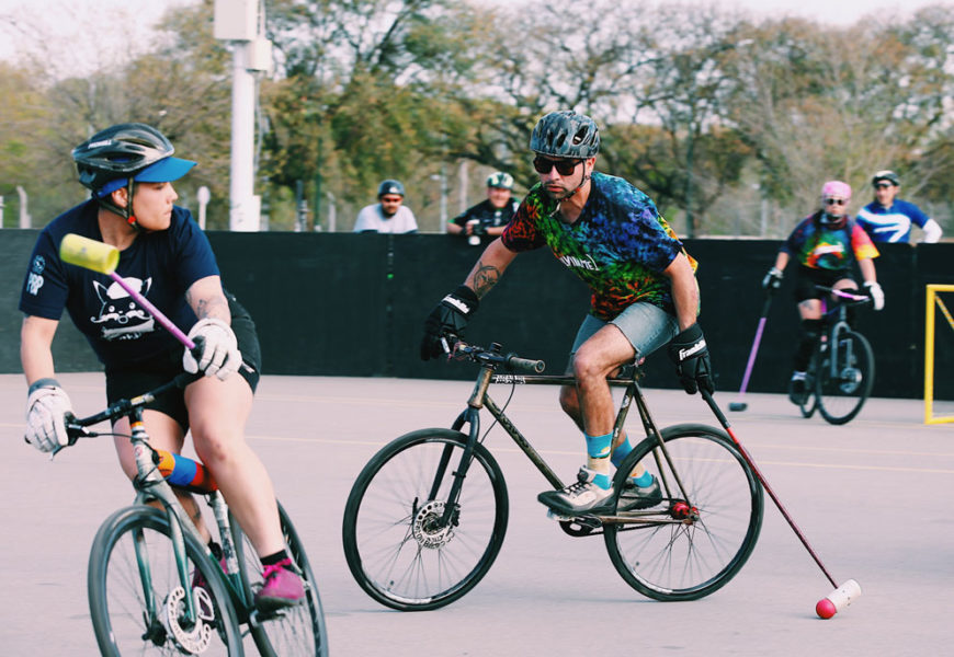 El bici polo es un deporte que se ha instalado con mucha fuerza en América Latina, tuvo su primer mundial en Argentina en septiembre de 2019 y actualmente se practica con entusiasmo en distintos clubes del país. Se trata de un partido de 12 minutos donde hay tres jugadores por equipo, que al mismo tiempo cumplen la función de jugar en cancha y portería, y donde gana quien anote más goles en el tiempo estimado.